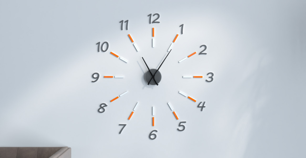 Pendule originale XXL avec chiffres de 90 cm fabriquée en France - gris foncé, orange et blanc. Grâce à ce configurateur vous pouvez personnaliser votre pendule originale XXL avec chiffres de 90 cm fabriquée en France.